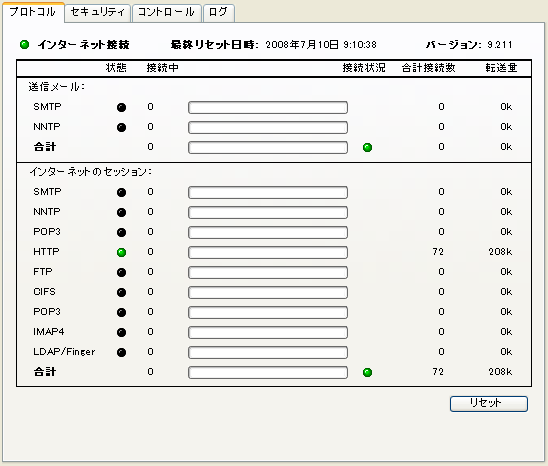 [更新]ボタンを押すと、インターネットサービスが設定フォーム(InetSvcs.cf)を再読み込みします。 注意FirstClassは、数分おきに設定フォームを自動的に再読み込みします。このボタンは、今すぐ再読み込みをしたい場合にクリックしてください。このボタンは、以前の[設定の再読み込み]ボタンに代わるものです 設定の再読み込み中は、インターネットモニタのステータスランプが黄色になります。 [ログを