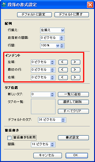 段落のインデントの設定