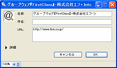 名前の変更や件名の追加などを行うには、リンクのプロパティを開き、