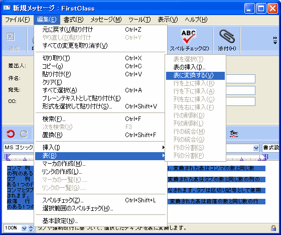 テキストを選択して、表に変換することができます。このためには、以下の操作を行ってください。