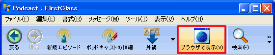 エピソードをWeb上で確認するには、ポッドキャストを選択して[ブラウザで表示]をクリックしてください。