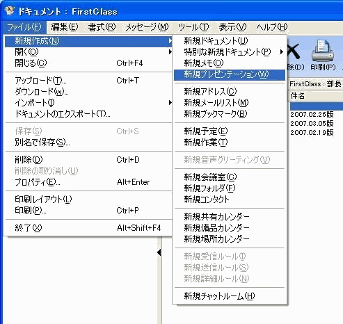 2       [ファイル]>[新規作成]>[新規プレゼンテーション]を選択します。