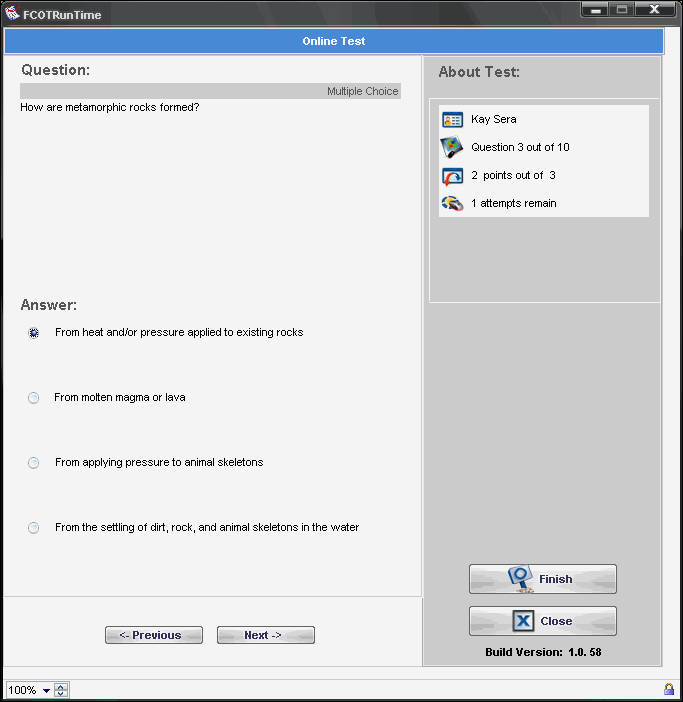 Students take tests online by accessing the Testing tool from their FirstClass ED Desktops. All they need is the grade, class, and test code.