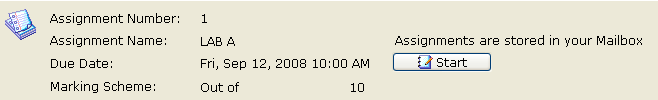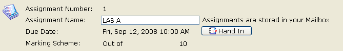 A copy of the assignment is automatically created and stored in the students' Mailbox. Once they start the assignment, the Start button changes to a Hand In button. When students complete the assignment, they click Hand In to send the completed assignment to the Incoming Assignments area.