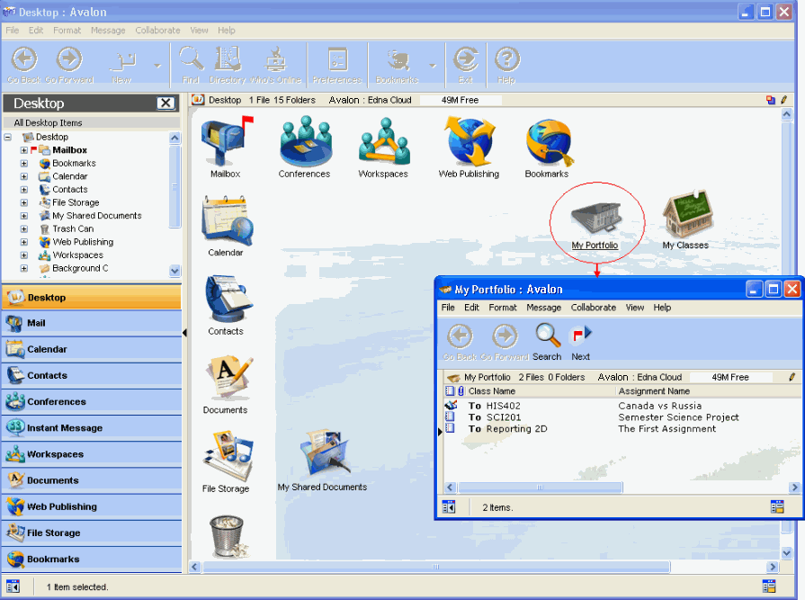The student's Portfolio is a collection of work the student has completed. It may showcase student achievement, or provide a sample of current work. Work is added to the Portfolio by being dragged from the Mailbox.
