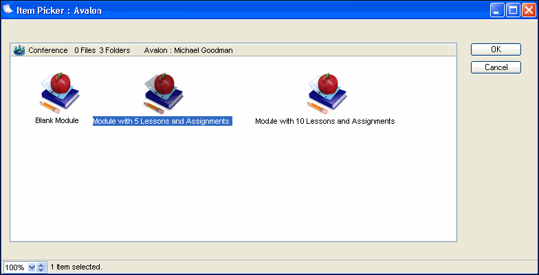 4 Choose the type of lesson/assignment you wish to create and click OK.