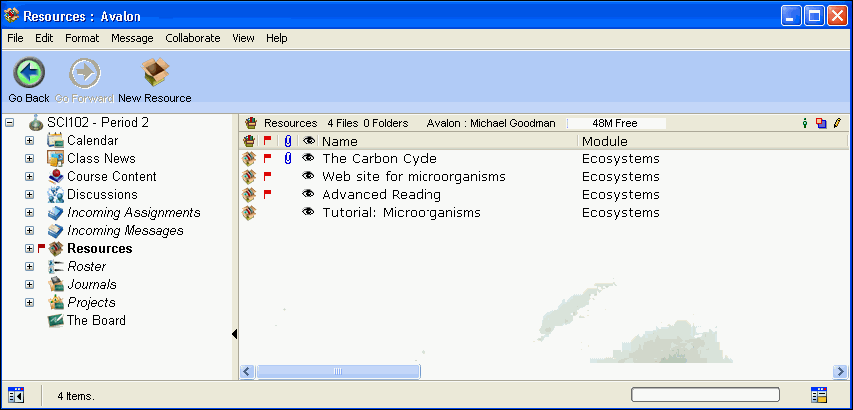 This example shows how a teacher uses the Resources area of his class to provide additional information to students.