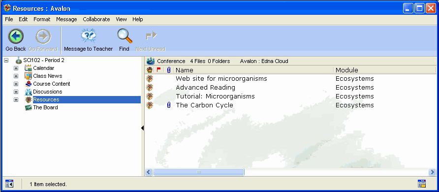 FirstClass ED provides a class area called Resources. Your teacher may use this area to provide extra materials, such as