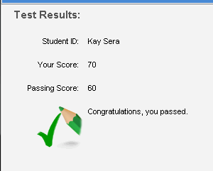 Click Finish when you have completed the test. If your teacher has set the criteria to show your results, you will see your mark at the end of the test. These results may also (or instead) be emailed to you.