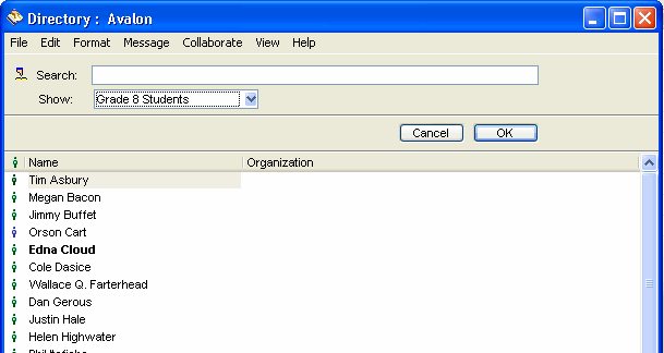2       Choose a name from the Directory, or use the Shift or Control keys to choose multiple names.