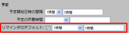作成するすべての予定と作業、およびユーザが招待されている予定に対してデフォルトのリマインダ時間を指定するには、[基本設定]の[カレンダー]タブで[リマインダのデフォルト]を更新してください。