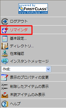 ログインしている間に、予定または作業の作成時に指定した時刻になると、リマインダがツールバー上に[リマインダ]ボタンとして表示されます。カレンダーの予定の場合、このリマインダはその予定の参加者の基本設定に従って表示されます。