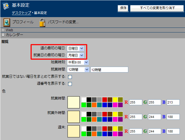 カレンダー表示をカスタマイズするには、カレンダーの基本設定で必要な変更を行ってください。