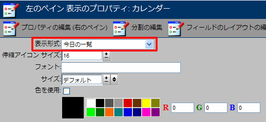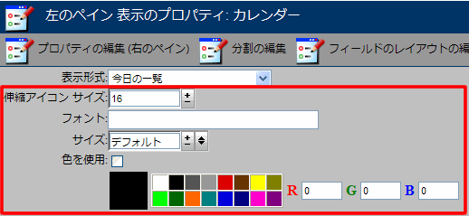 カレンダーのテキストは、どのような表示形式でも、フォントの種類、文字のサイズ、色を変更できます。開いているカレンダーのアイテム内で表示されているテキストには、この変更は影響しません。