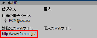 コンタクトの作成時に企業や個人のWebサイトのURLを登録した場合は、そのコンタクトフォームから直接そのWebページにアクセスできます。
