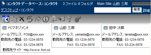 [インデックスカード表示]でコンタクトを表示すると、電話番号などの一般的な情報を直接見ることができるので、ユーザに電話をかけるときなどにそのユーザの[コンタクト]フォームを開く必要がありません。