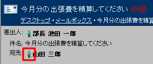 すでに送信されたメッセージのアドレスを指定するには、メッセージの宛先領域で対象の名前をクリックしてください。このアドレスが[宛先]フィールドに入力された新規メッセージが作成されます。