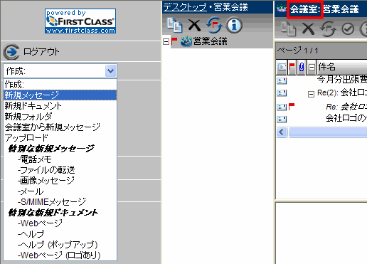 他のユーザを宛先にするのと同じ要領で、会議室をメッセージの宛先に指定できます。会議室が自動的にメッセージの宛先として指定されるようにするには、その会議室を開いた状態でメッセージを作成してください。