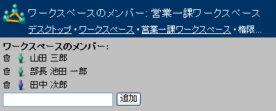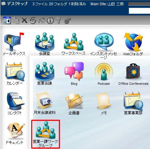自分のワークスペースを他のワークグループメンバーと共有すると、そのメンバーのデスクトップに自分のワークスペースへのリンクが表示されます。