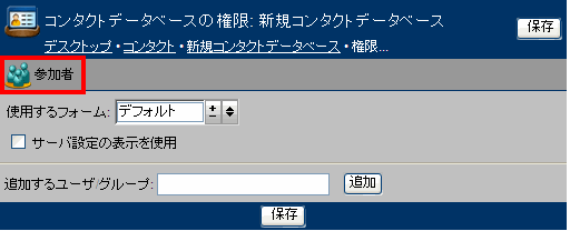 コンタクトデータベースの権限を指定するには、以下の手順に従ってください。