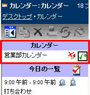 [カレンダーの一覧]内のカレンダーの横にある[カレンダーを隠す]20100624_133222_8.pngをクリックすると、そのカレンダーに属する予定や作業がすべて表示されなくなります。
