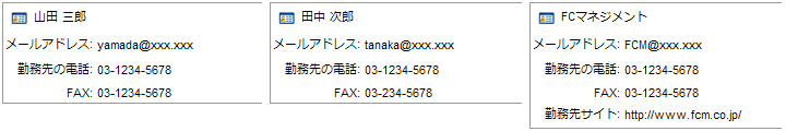 インデックスカード表示は、コンタクト情報を表示するときに特に便利です。