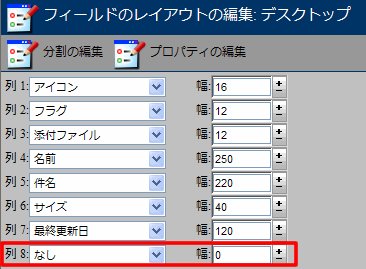 列を削除するには、削除したい列のフィールドで、ドロップダウンリストから一番上の[なし]を選択します。