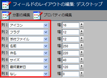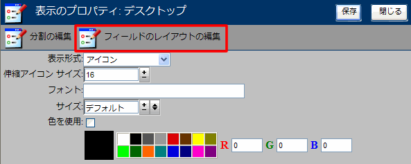 1 [表示のプロパティ]フォームで、対象のペインの[フィールドのレイアウトの編集]をクリックします。