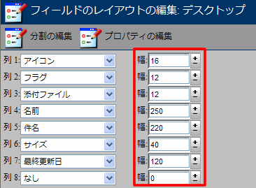 3 各列のフィールド名を選択し、必要な列幅を適用します。