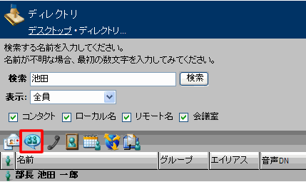 ディレクトリまたは在席確認リストを開いている場合は、ユーザを選択して[ユーザをチャットに招待する]をクリックすると、インスタントメッセージを開始できます。ディレクトリで招待できるのは、現在接続中のユーザ(名前が太字で表示されているユーザ)だけです。ただし、名前が斜体で表示されているユーザは招待できません。